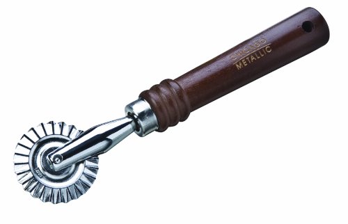 Chicago Metallic Baking Essentials is a new line that is sure to complement the best bakeware. With its modern, dark-stained wooden handles, stainless steel accent pieces and high grade silicone heat-resistant up to 500-Degree, these essentials are a key ingredient to any baker's recipe. This single head pastry crimper is made from stainless steel and has a dark wood handle. It measures 6-1/2-inch long as is used for crimping dough. Hand wash to extend the life of the product.